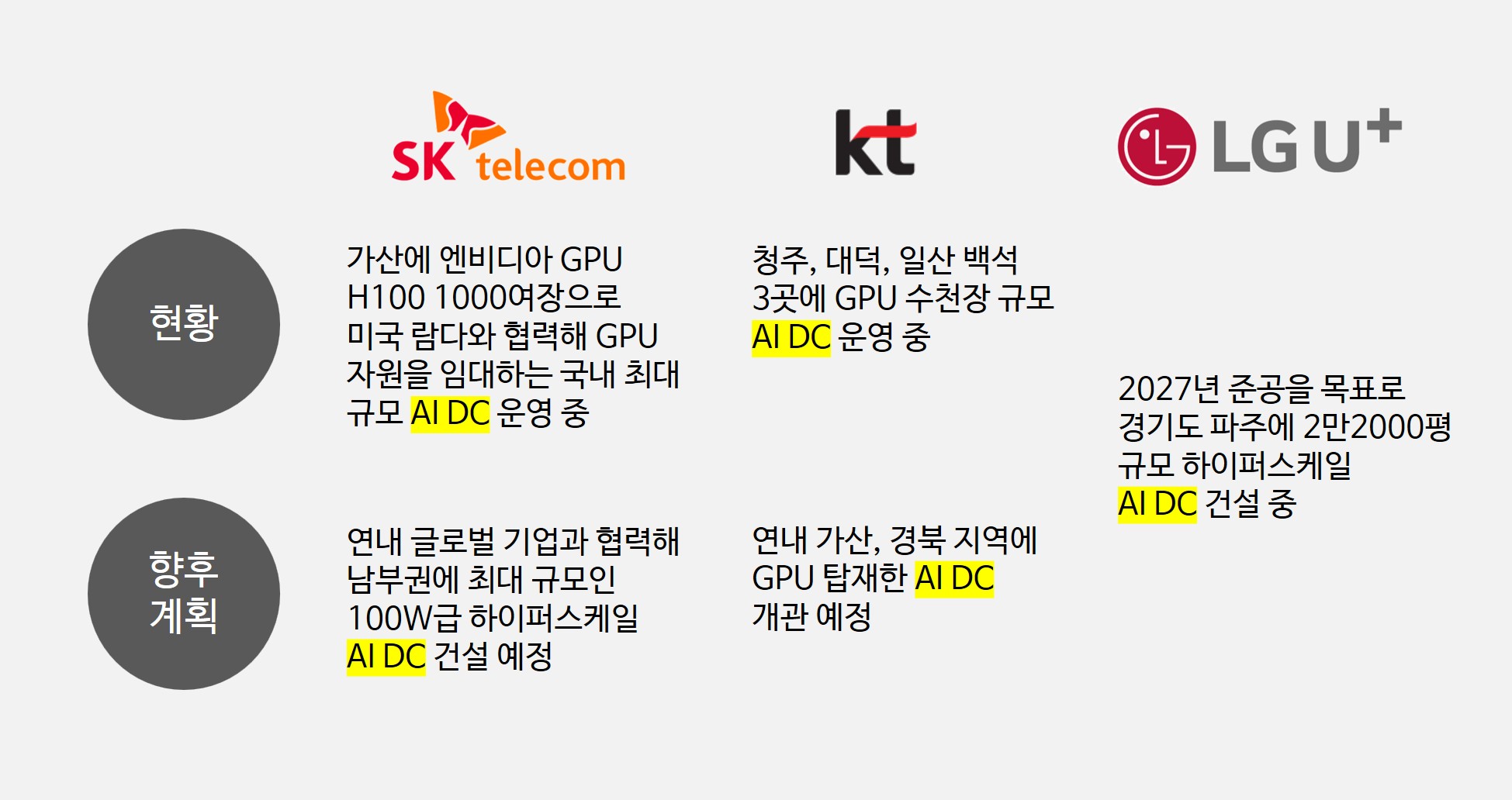 2025년 상반기 통신 3사 AI DC 현황 (출처: 전자신문)