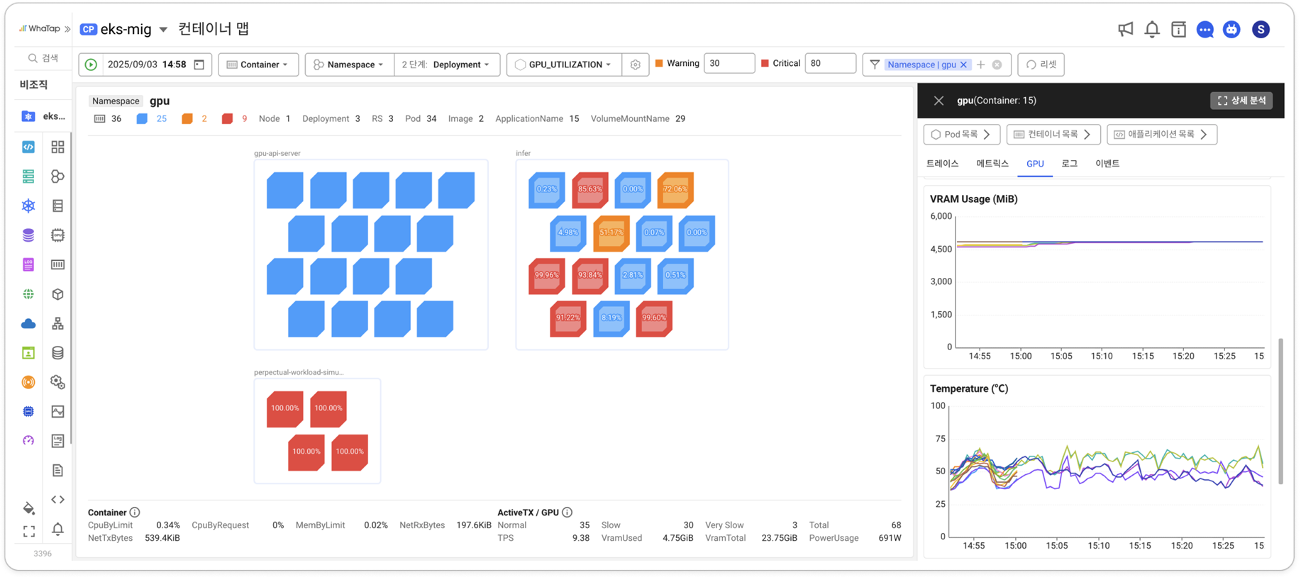 쿠버네티스 워크로드 기반의 GPU를 이용한 애플리케이션의 트랜잭션, 로그 등 내부 분석 (우측 화면) |