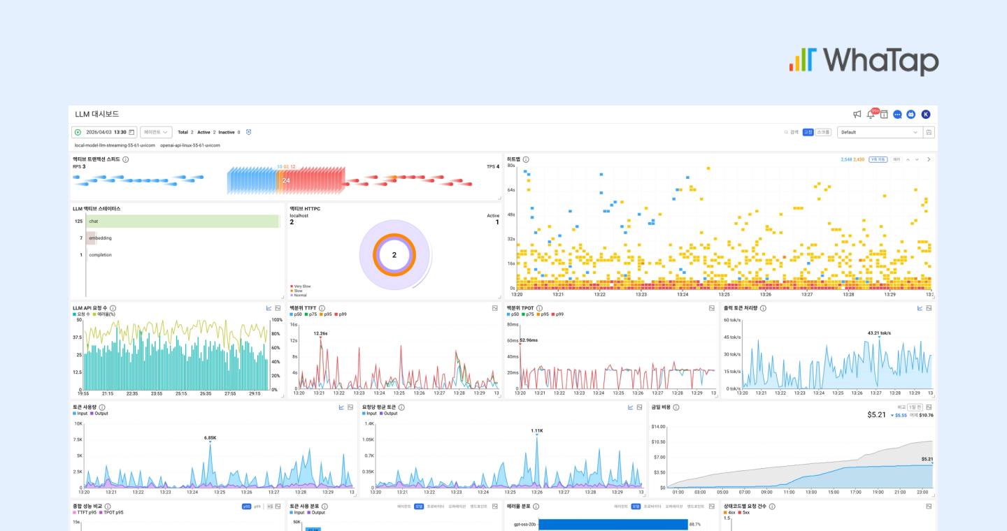 새롭게 추가된 와탭의 기능과 서비스를 확인해보세요! 대규모 언어 모델(LLM) 환경을 효과적으로 모니터링할 수 있는 LLM Observability가 출시되었습니다.